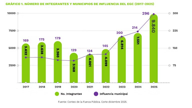 El Clan del Golfo creció un 140% durante el régimen petrista. Pasó de 4099 efectivos en 2022 a 9840 en 2025