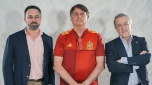 Durante la reciente visita a Brasil, el presidente de Vox, Santiago Abascal y el eurodiputado Hermann Tertsch, posaron junto al presidente Jair Bolsonaro, quien llevaba puesta la camiseta de la selección española como muestra no solo de su respaldo a España, a Vox, a toda la Iberosfera sino también como sÃmbolo de patriotismo frente al avance del globalismo. Sin embargo, ningún medio lo cubrió.