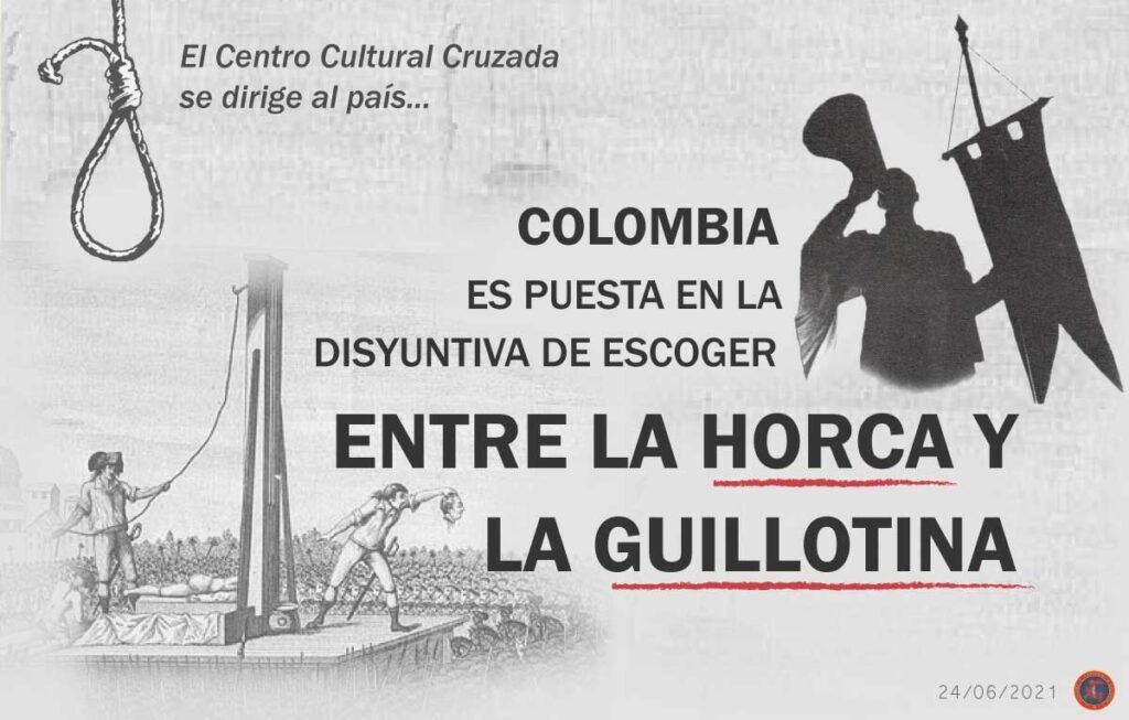 Cruzada se dirige al país: Colombia es puesta en la disyuntiva de escoger entre la horca y la guillotina