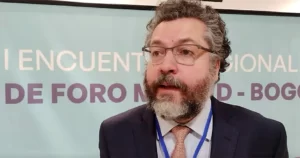 Ernesto Araújo pide a colombianos y brasileños verse en el espejo de Venezuela para evitar repetir la tragedia que ha llevado al exilio a más de seis millones de venezolanos. “Han conseguido destruir el país que tenía la mayor renta per cápita de Latinoamérica, que era Venezuela, y la mayor reserva de petróleo –ojalá se reconstruya, pero consiguieron destruirla–, así que cómo no van a conseguir destruir a otros países como Brasil y como Colombia”.