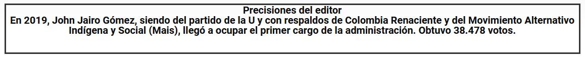Anotaron en el organismo de investigación que, «por lo menos, 25 contratos presuntamente fueron entregados al señor Amaya, ahijado del mandatario municipal. Adicionalmente, evidenció que los dineros desembolsados, al parecer, se destinaron para financiar la campaña del coronel (r) Gallego Chávez, quien aspiraba reemplazar al entonces alcalde».