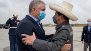 «Llamo a los empresarios de Colombia, de América Latina y del mundo a acudir a Perú para invertir sin ningún temor. Le estamos declarando la guerra a los enemigos comunes que tenemos como es la pobreza, las desigualdades que tenemos al lado de cada una de nuestras fronteras», dijo por su parte Castillo.