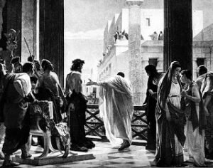 * El tribunal de la infamia, el Sanedrín judío, presidido por el sumo sacerdote Caifás condenó a Nuestro Señor Jesucristo, el Inocente por excelencia, gracias a la repugnante lavada de manos de Poncio Pilatos, el rey de Judea.