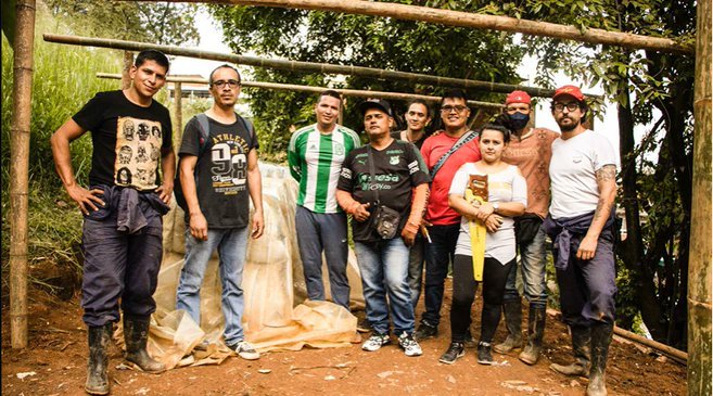 Integrantes de la cooperativa Coopripaz. A la izquierda, de negro, Leonardo Díaz, y junto a él, Eduard Ramírez. Cooperativa Coopripaz