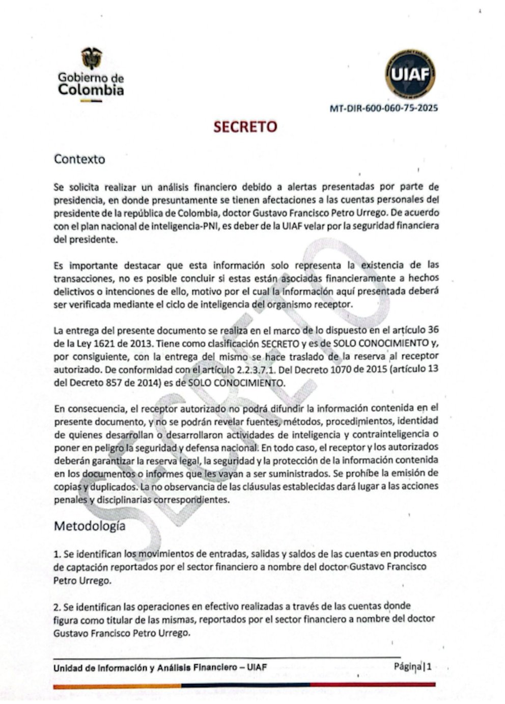 Los informes de la Unidad de Información y Análisis Financiero (Uiaf) exhibieron los altos gastos y transacciones del presidente Gustavo Petro entre 2023 y 2025.