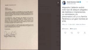 Como resultado del espontáneo movimiento de toda la ciudadanía en contra del desacertado y sospechoso nombramiento del señor Calderón Chatet para la gerencia de EPM, se produjo la caída de éste.