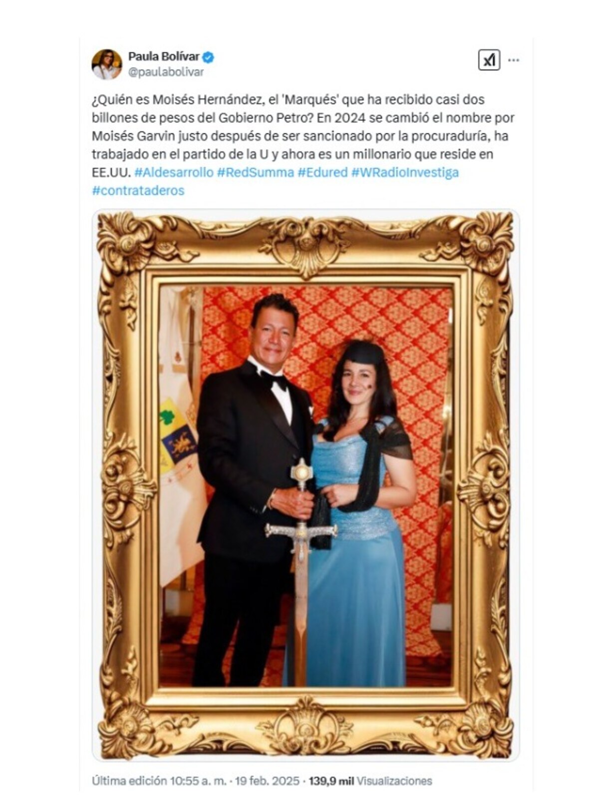Además, el informe que desató duros comentarios en las redes sociales resalta que, en 2024, Hernández fue destituido por la Procuraduría debido a incumplimientos contractuales, pero aprovechó esta situación para cambiar su identidad legal a Moisés Garvin: una movida que al parecer y, según expuso el medio, le permitió esquivar consecuencias adicionales.